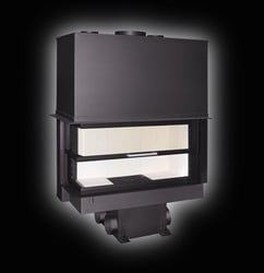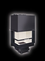 2 o 4 boccole d'uscita per l'aria calda Ø150 mm, porta in vetro ceramico pivottante e sollevabile. Questi modelli sono adatti anche per BA-1 (fino a 3 inserti omologati sullo stesso camino). Tutte le dimensioni sono senza garanzia.